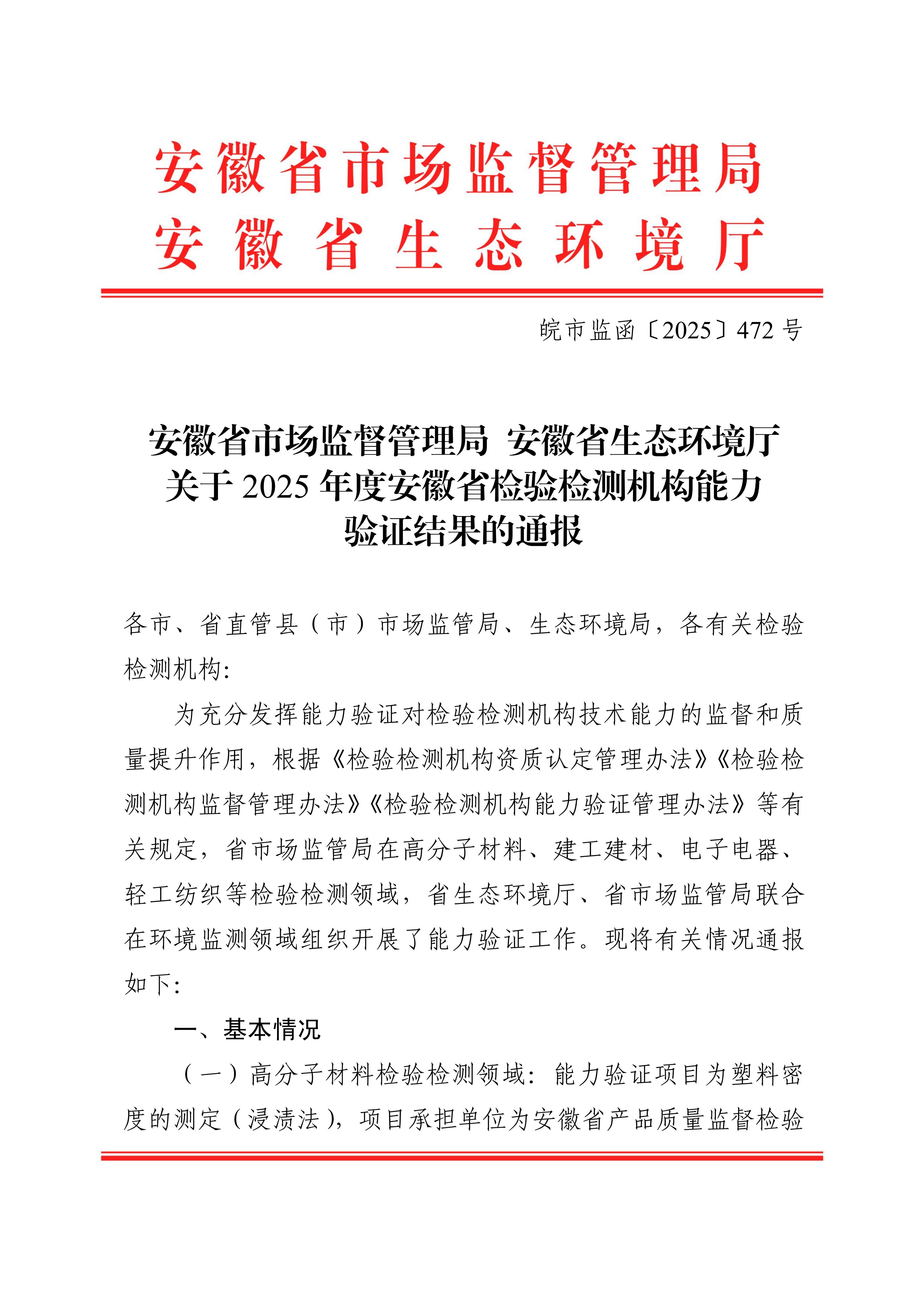 喜訊 | 祝賀我司順利通過(guò)2025年度安徽省檢驗(yàn)檢測(cè)機(jī)構(gòu)能力驗(yàn)證